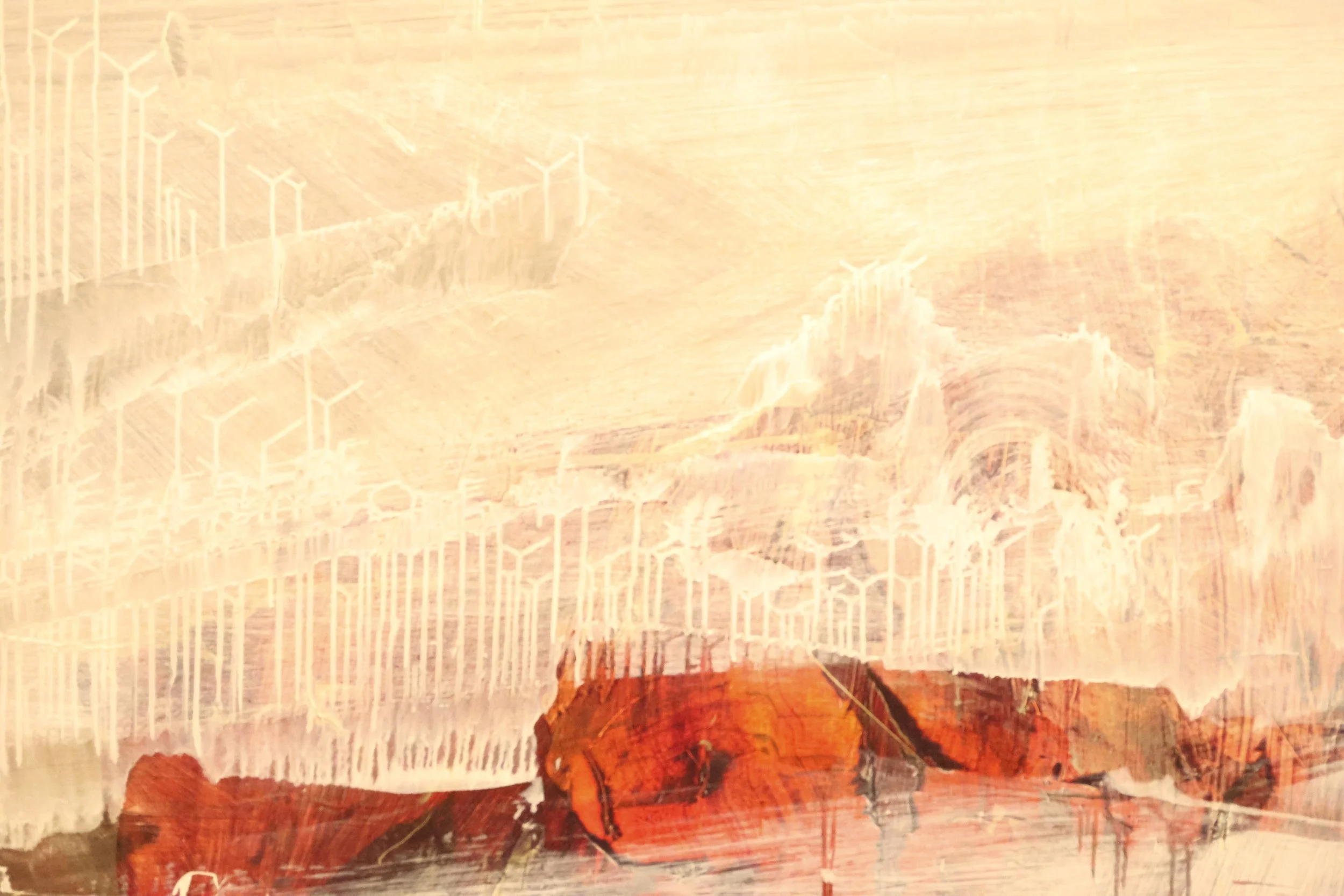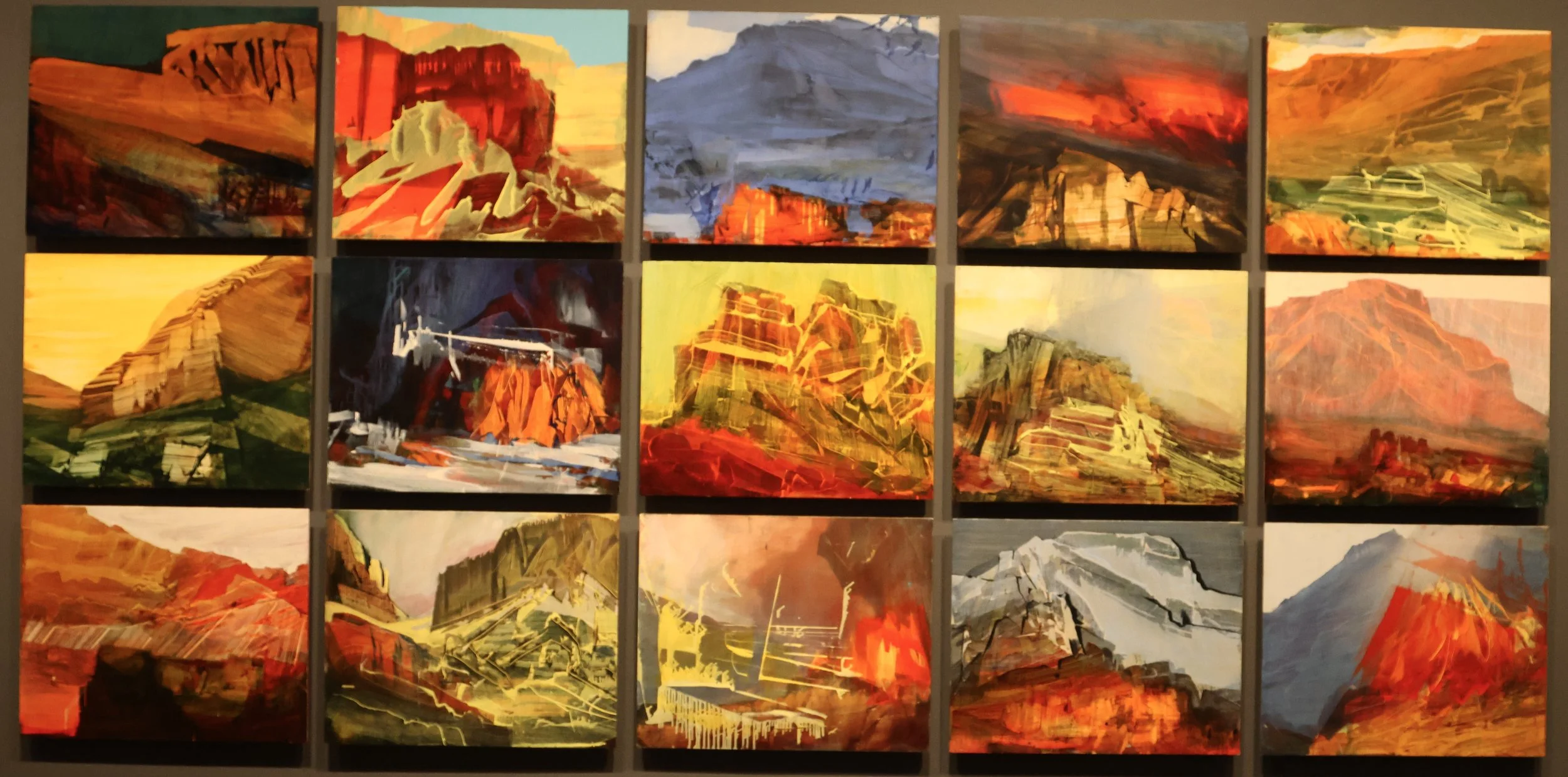 Though largely depicting still scenes, his art is extremely emotional and evokes a great sense of awe, much like being in the presence of a real mountain shaped by the air of a thousand years. His works feel crafted by time — not months, but decades. There is an energetic feeling that can be derived from his work as well. Rock formations are depicted in eye-catching neons and strikingly bright colors.