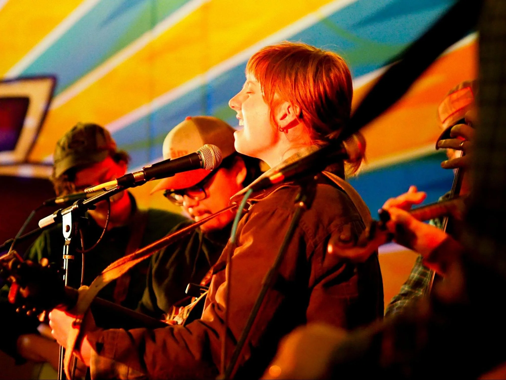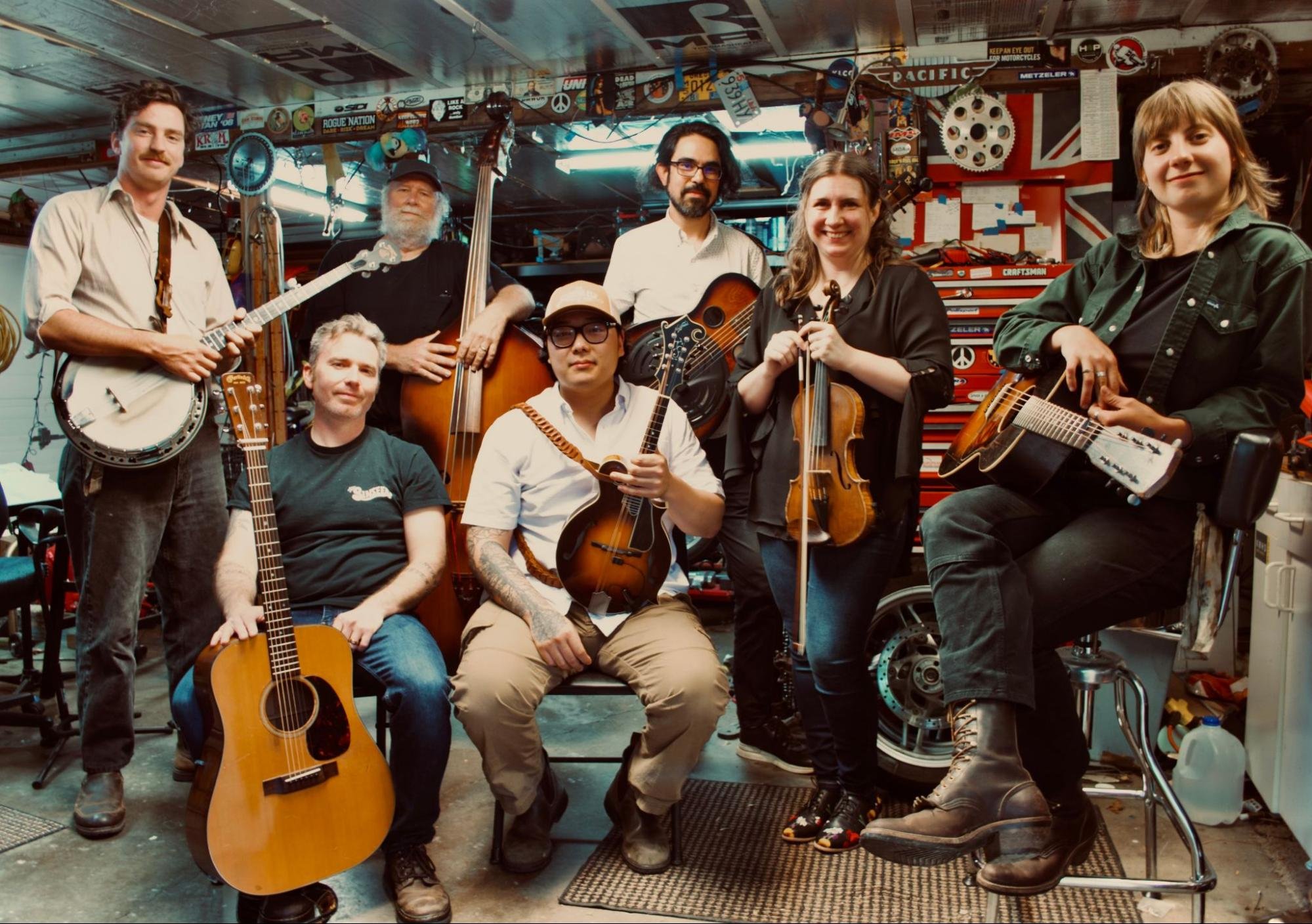 No music better encapsulates life in and around Eugene quite like the music of Moon Mountain String Band. This lively seven-piece bluegrass group from over here in the forests of Western Oregon got its start in a picture-perfect way: founding members Dylan Plummer (he/him) and Albert Yang (he/him) playing acoustic guitars around a campfire. Soon after, Yang picked up the mandolin and got good, quick. This turned on the gas that lit the fire beneath the pair to start a more serious music venture. Another founding member, standup bass player Dave Deblaker (he/him), who knew Plummer from a previous band, was quickly there to help kick things into gear. A few open jam sessions later, the group reached its final headcount with the addition of dobro player Zachary Wallmark (he/him), fiddler and vocalist Sarah Wilfong (she/her), guitarist and vocalist Slug Kaltenbach (they/them), and lead guitarist and vocalist Shane Connor (he/him).